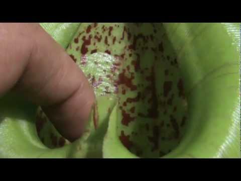 A pitcher plant is a carnivore This is what a pitcher plant looks like. It has a long tube. Its yellow, red green and purple. It has a sugary liquid called nectar. It is very sticky. It atttracts insects like flies so the fly flies into the tube and slips. It kills by making the bugs slip into poison.